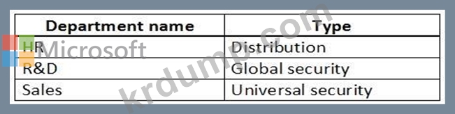 회사에는 3개의 부서가 있습니다. 각 부서에는 다음 표와 같이 그룹이 있습니다.
