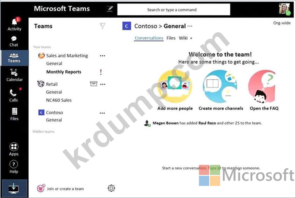 Microsoft Teams 클라이언트에서 전시회에 표시된 팀을 검토합니다. (전시 탭을 클릭하세요.)