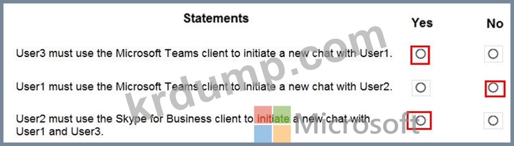 공존 모드는 다음 표와 같이 User1, User2, User3이라는 세 명의 사용자에 대해 구성됩니다.