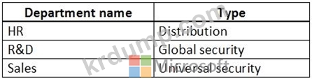 회사에는 3개의 부서가 있습니다. 각 부서에는 다음 표와 같이 그룹이 있습니다.