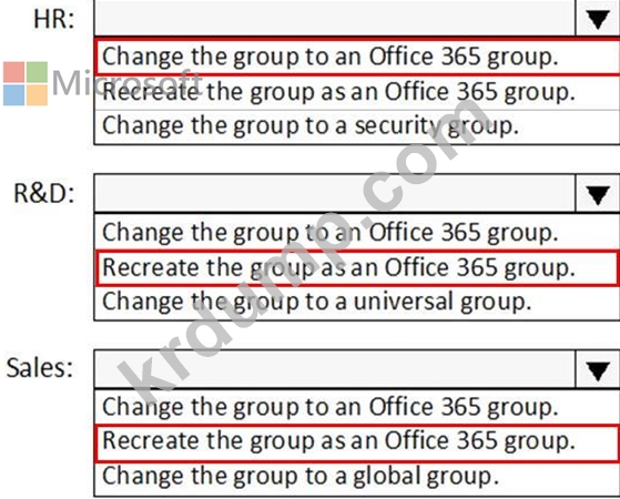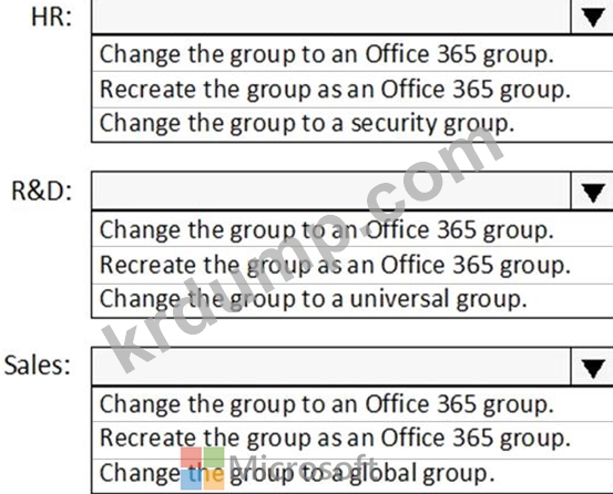 각 그룹에 무엇을 해야 합니까? 응답하려면 응답 영역에서 적절한 옵션을 선택하십시오.
