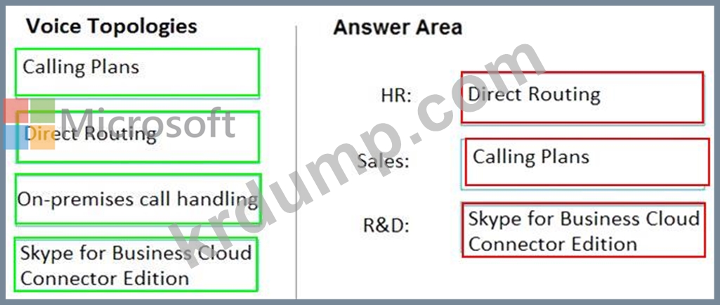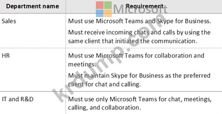 부서별로 음성 토폴로지를 추천해야 합니다. 토폴로지는 호출 요구 사항 및 보안 요구 사항을 충족해야 합니다.