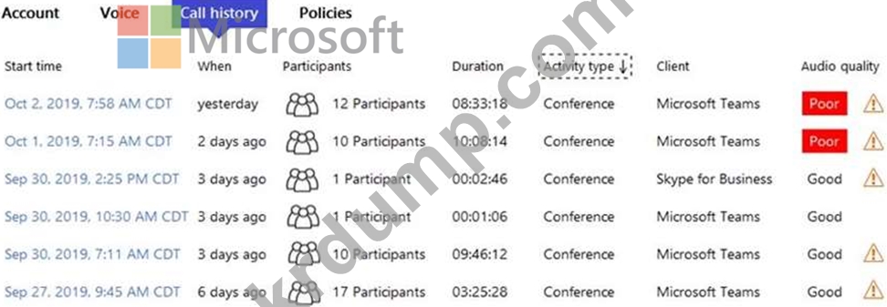 한 사용자는 10월 2일의 전화 회의의 오디오 품질이 좋지 않았다고 보고합니다.