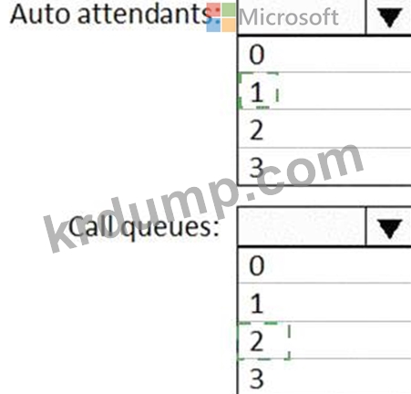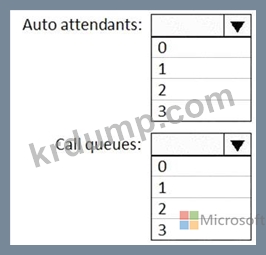 요구 사항을 충족하기 위해 구성해야 하는 자동 전화 교환 및 통화 대기열의 최소 수는 얼마입니까? 응답하려면 응답 영역에서 적절한 옵션을 선택하십시오.