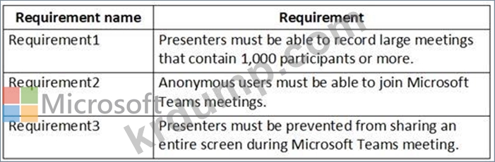 다음 표에 나와 있는 요구 사항을 충족하도록 Microsoft Teams를 구성해야 합니다.
