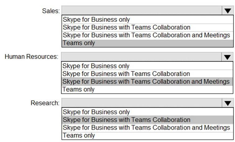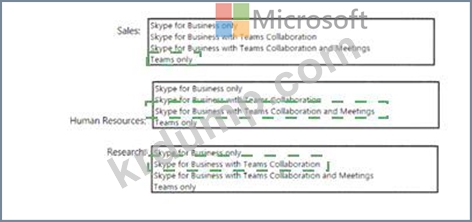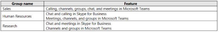 그룹을 기반으로 단계적으로 Microsoft Teams로 업그레이드할 계획입니다. 각 그룹에 필요한 기능은 다음 표와 같습니다.