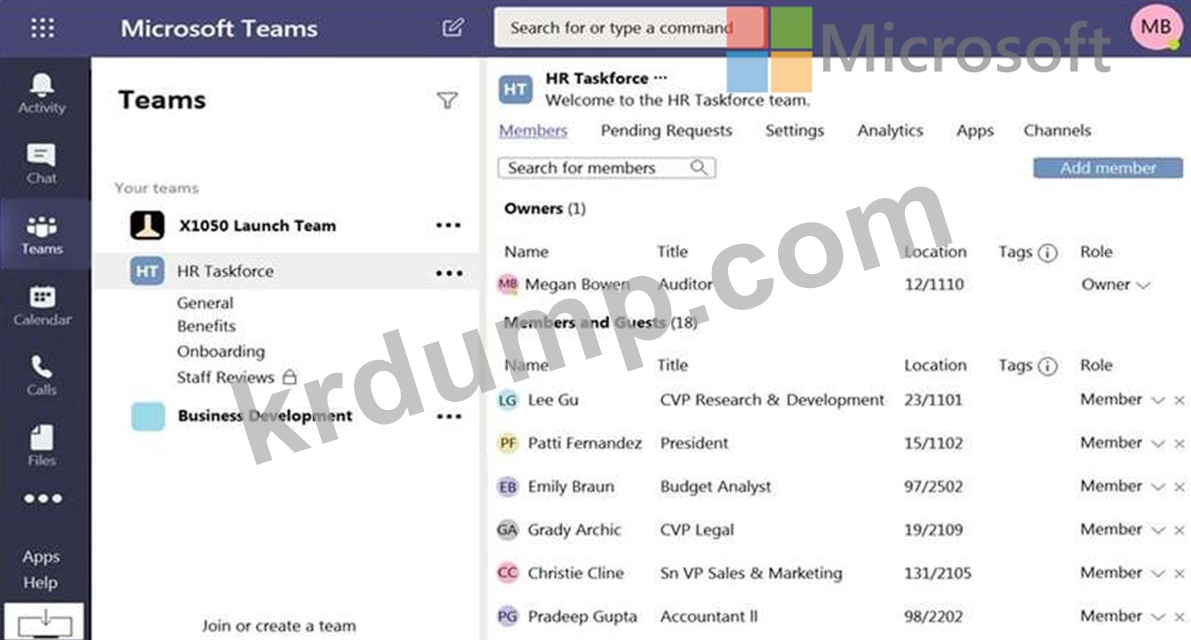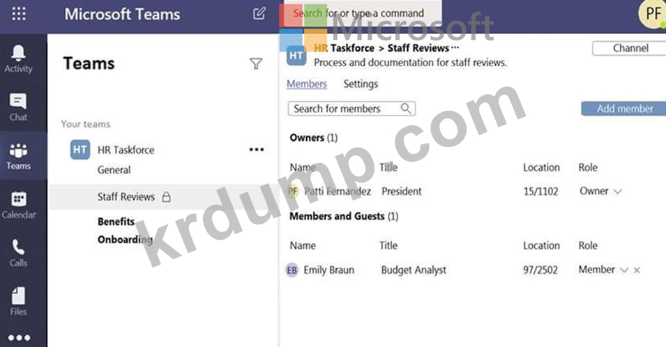 Your company has a Microsoft Teams deployment that contains a team named HR Taskforce. The members of