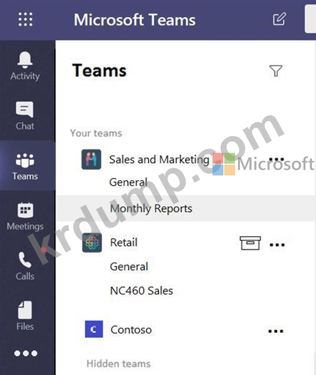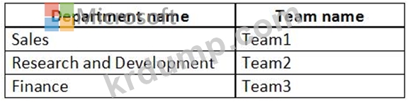 You company has a Microsoft 365 subscription that contains the teams shown in the following exhibit.