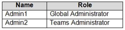 You have a Microsoft 365 subscription that uses Microsoft Teams and contains the users shown in the
