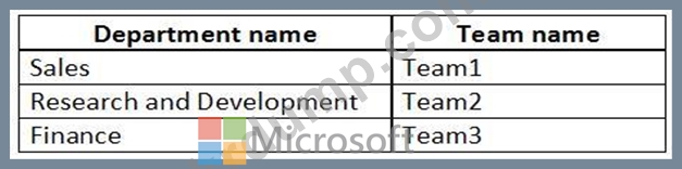 The company has the departments and teams shown in the following table.