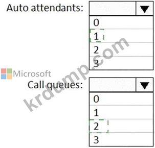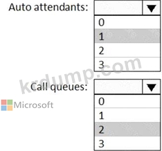 요구 사항을 충족하기 위해 구성해야 하는 자동 전화 교환 및 통화 대기열의 최소 수는 얼마입니까? 대답하려면 대답 영역에서 적절한 옵션을 선택하십시오.