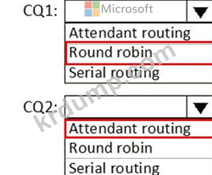 각 통화 대기열에 대해 어떤 라우팅 방법을 구성해야 합니까? 대답하려면 대답 영역에서 적절한 옵션을 선택하십시오.