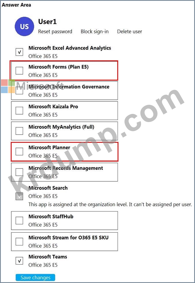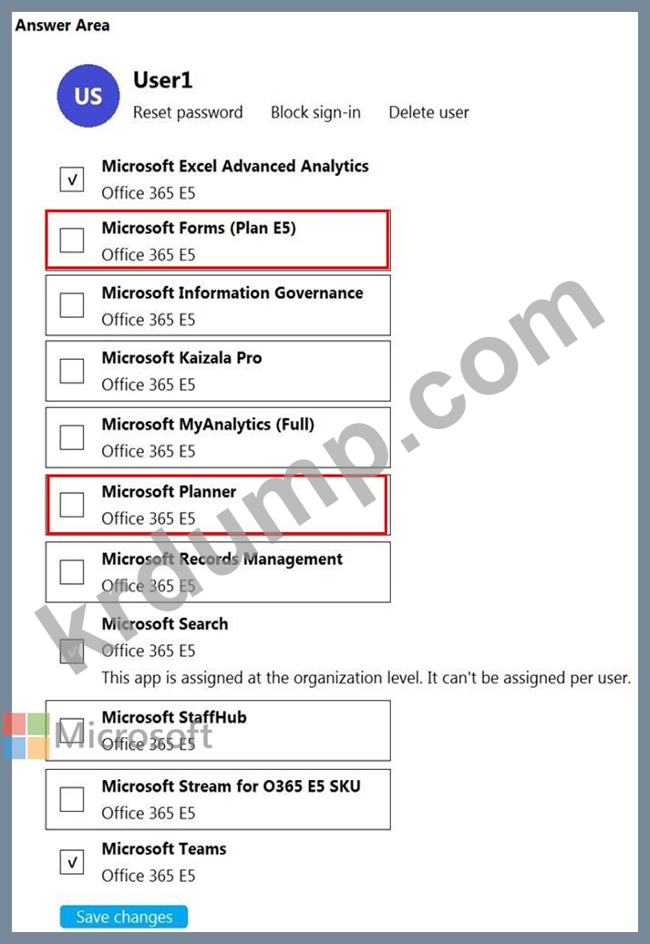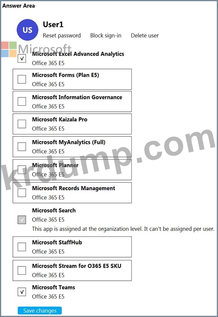 User1에게 어떤 추가 라이선스를 할당해야 합니까? 응답하려면 응답 영역에서 적절한 설정을 선택하십시오.