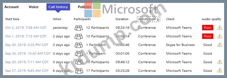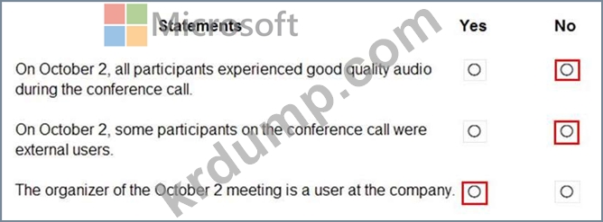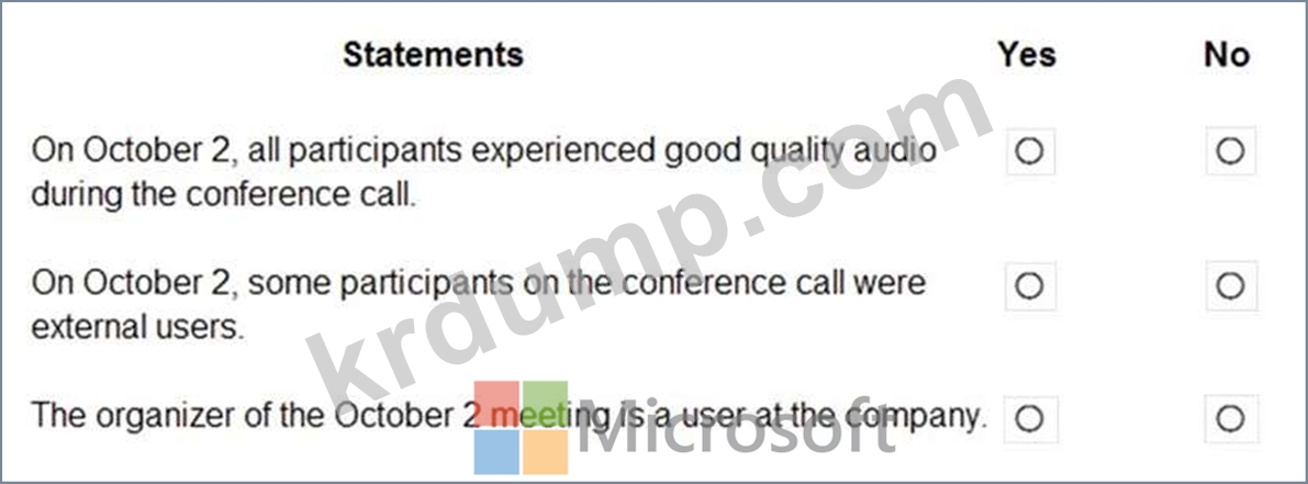 사용자가 10월 2일 전화 회의의 오디오 품질이 좋지 않았다고 보고합니다.