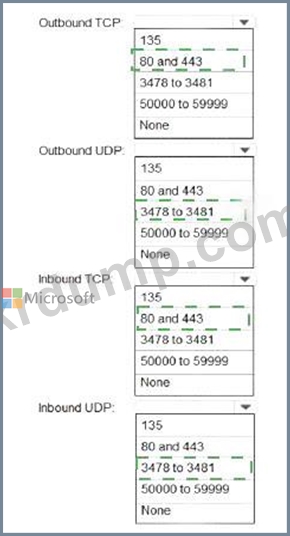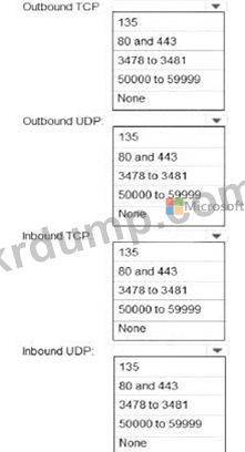 계획된 업그레이드 후 회사의 방화벽에서 허용되어야 하는 네트워크에 대한 인바운드 포트와 Office 365에 대한 아웃바운드 포트를 권장해야 합니다. 솔루션은 보안 요구 사항을 충족해야 합니다.