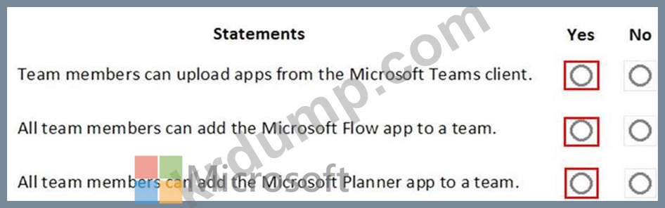 다음 각 진술에 대해 진술이 참이면 예를 선택하십시오. 그렇지 않으면 아니요를 선택합니다.