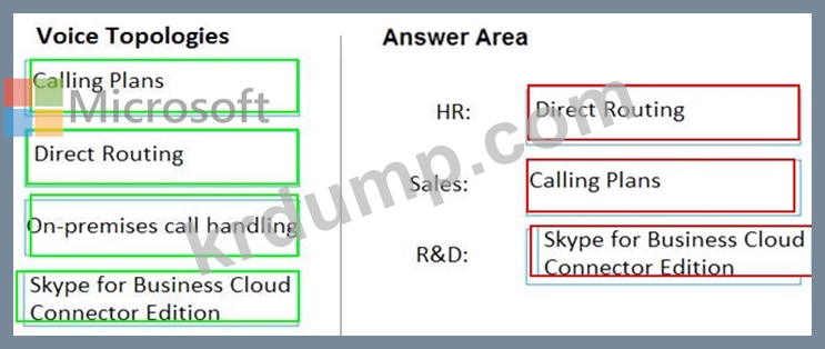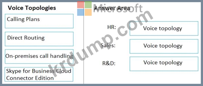 부서에 대한 음성 토폴로지를 권장해야 합니다. 토폴로지는 호출 요구 사항 및 보안 요구 사항을 충족해야 합니다.