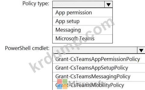 어떤 정책 유형을 만들고 정책을 할당하기 위해 어떤 PowerShell cmdlet을 실행해야 합니까? 대답하려면 대답 영역에서 적절한 옵션을 선택하십시오.