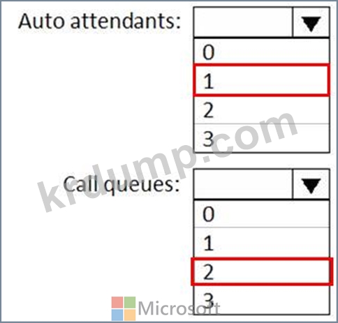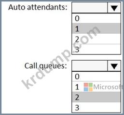 요구 사항을 충족하기 위해 구성해야 하는 자동 전화 교환 및 통화 대기열의 최소 수는 얼마입니까? 대답하려면 대답 영역에서 적절한 옵션을 선택하십시오.