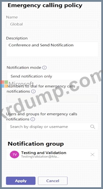 전역 긴급 통화 정책은 긴급 통화 전시회에 표시된 대로 구성됩니다. (긴급 전화 탭을 클릭합니다.)