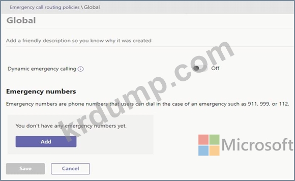 전역 긴급 통화 라우팅 정책은 긴급 통화 라우팅 전시회에 표시된 대로 구성됩니다. (긴급 통화 라우팅 탭을 클릭합니다.)