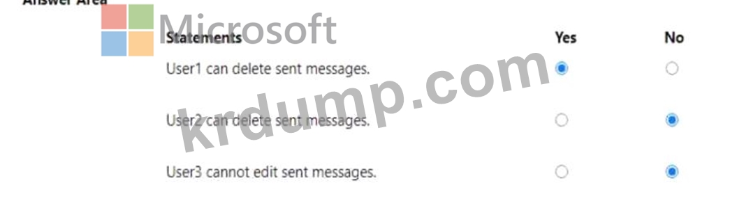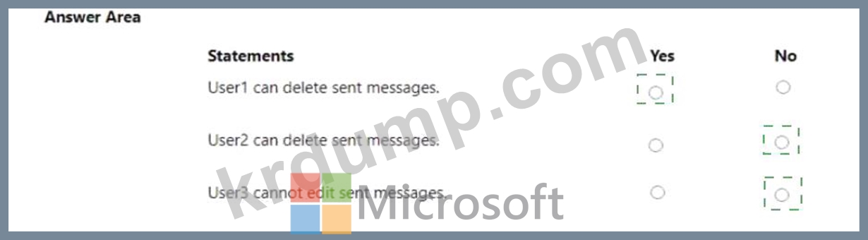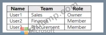 Teams를 사용하고 다음 표에 표시된 사용자를 포함하는 Microsoft 365 구독이 있습니다.