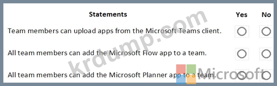 귀하의 회사는 다음 표에 표시된 팀이 포함된 Microsoft 365 구독을 보유하고 있습니다.