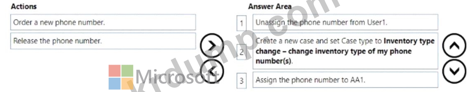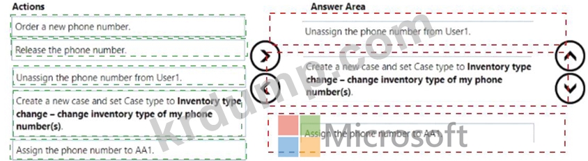 Microsoft Teams 관리 센터에서 어떤 세 가지 작업을 순서대로 수행해야 할까요? 답변하려면 작업 목록에서 해당 작업을 답변 영역으로 옮기고 올바른 순서대로 정렬하세요.