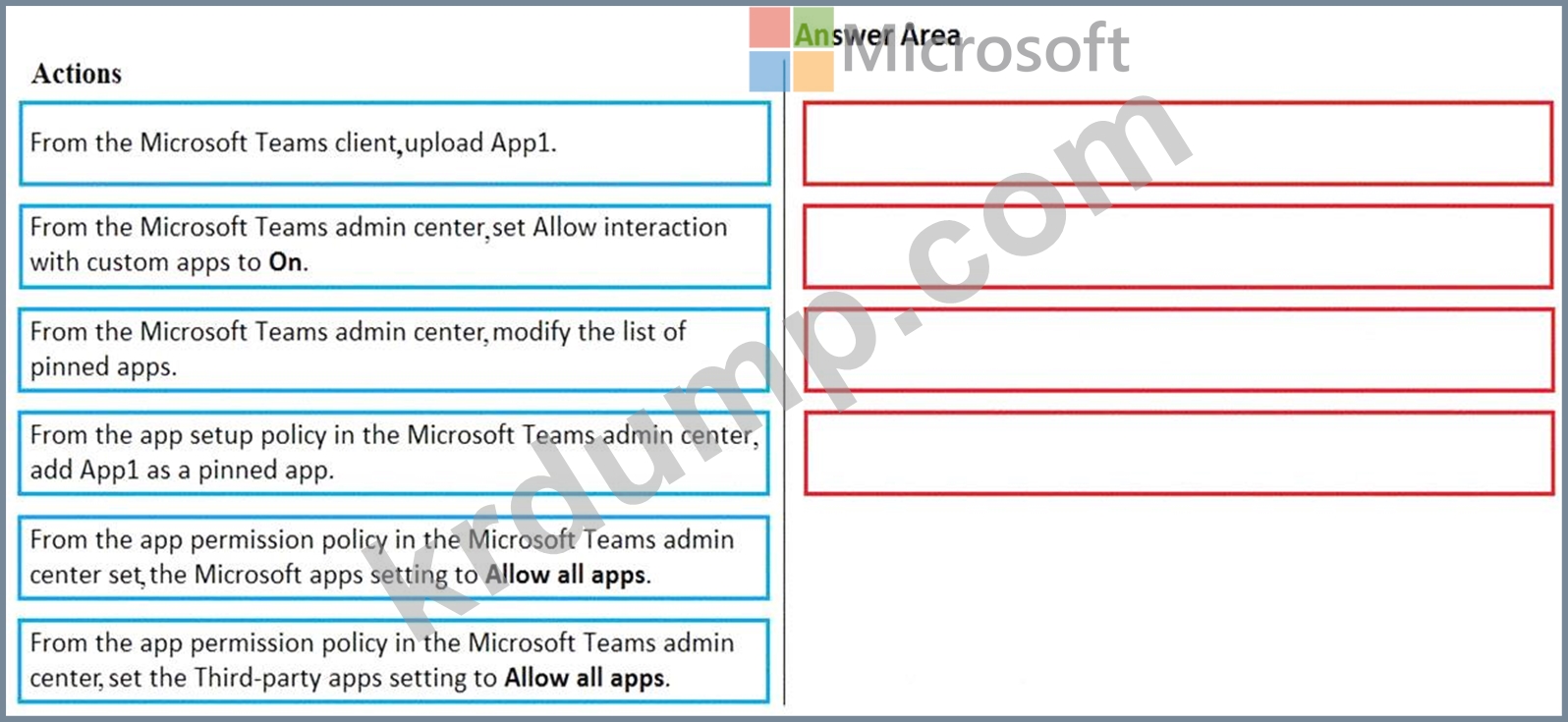 귀하의 회사에는 App1이라는 이름의 사용자 지정 Microsoft Teams 앱이 있습니다.