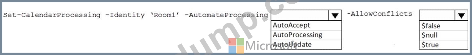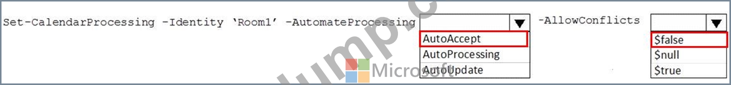 Room1에서 회의 초대를 자동으로 수락하도록 설정해야 합니다. 솔루션은 회의실을 사용할 수 없는 경우 회의 초대가 수락되지 않도록 해야 합니다.