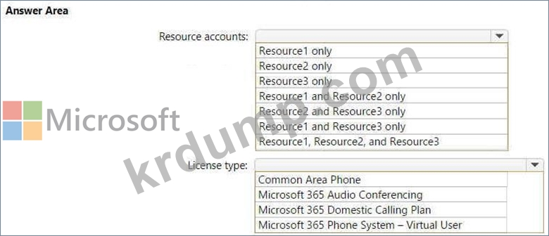 어떤 리소스 계정에 라이선스가 필요하며, 어떤 유형의 라이선스가 필요합니까? 답변하려면 답변 영역에서 적절한 옵션을 선택하세요.