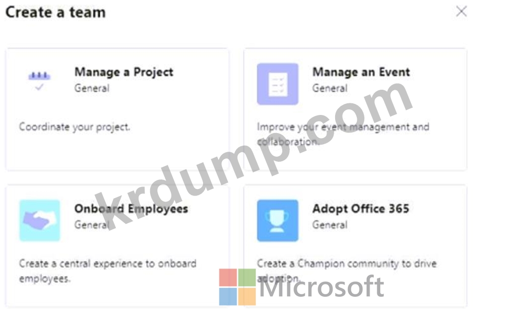사용자가 새로운 팀을 만들면 다음 그림에 표시된 템플릿이 표시됩니다.