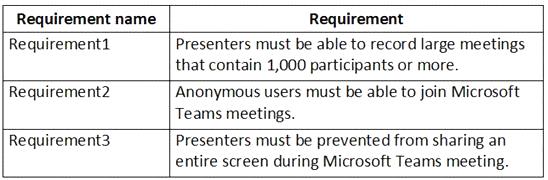 다음 표에 나와 있는 요구 사항을 충족하도록 Microsoft Teams를 구성해야 합니다.