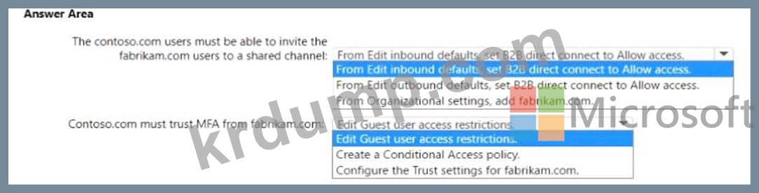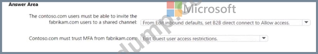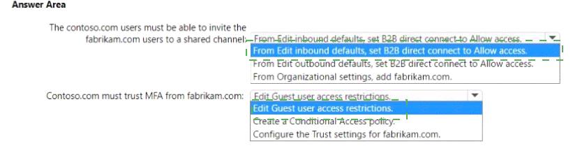 * contoso.com의 사용자는 fabrikam.com의 사용자만 공유 채널에 초대할 수 있어야 합니다.
