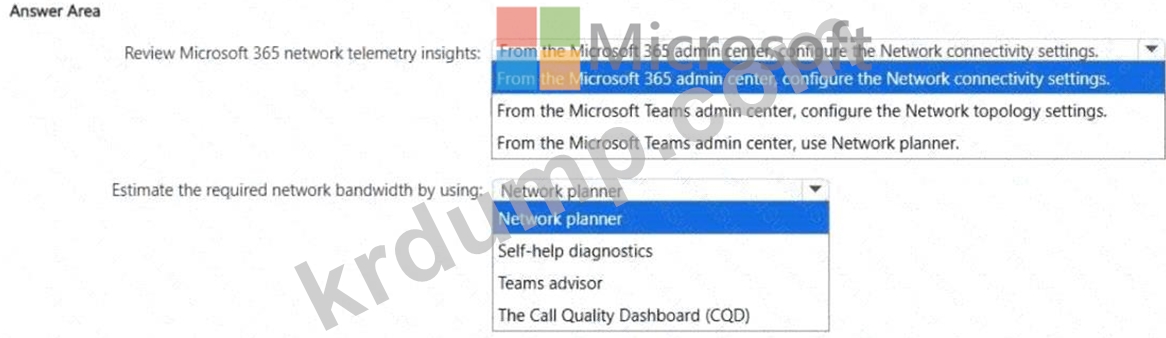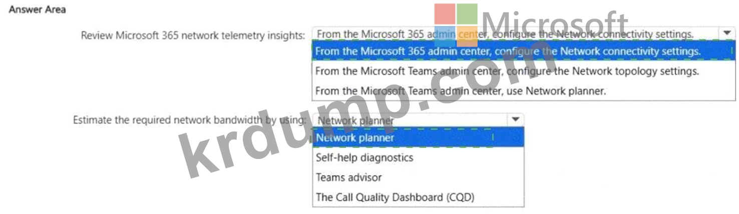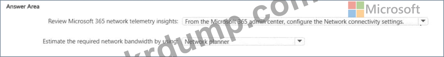 Microsoft 365 네트워크 원격 측정 통찰력을 검토하고 Branch1에 배포하는 데 필요한 네트워크 대역폭을 추정해야 합니다.