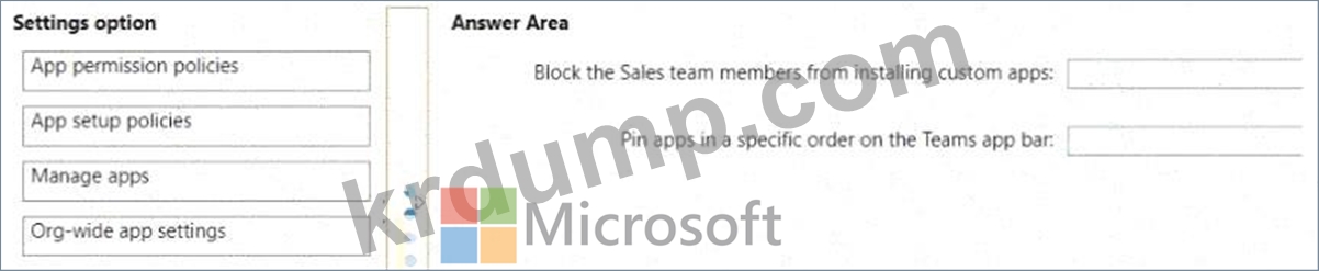 * Sales라는 팀 구성원이 사용자 지정 앱을 설치하는 것을 차단합니다.