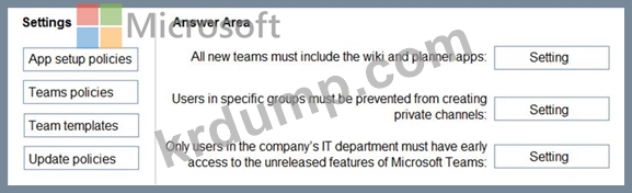 각 요구 사항을 충족하려면 어떤 설정을 구성해야 할까요? 답하려면 적절한 설정 옵션을 올바른 요구 사항에 맞춰 드래그하세요. 각 설정 옵션은 한 번, 여러 번 또는 전혀 사용하지 않을 수 있습니다. 콘텐츠를 보려면 창 사이의 분할 막대를 드래그하거나 스크롤해야 할 수도 있습니다.