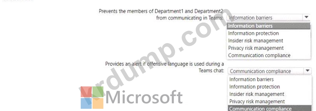 각 요구 사항에 맞게 어떤 Microsoft Purview 기능을 사용해야 할까요? 답변하려면 답변 영역에서 적절한 옵션을 선택하세요.