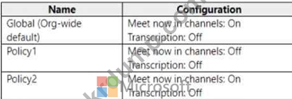 해당 구독에는 다음 표에 표시된 회의 정책이 적용됩니다.