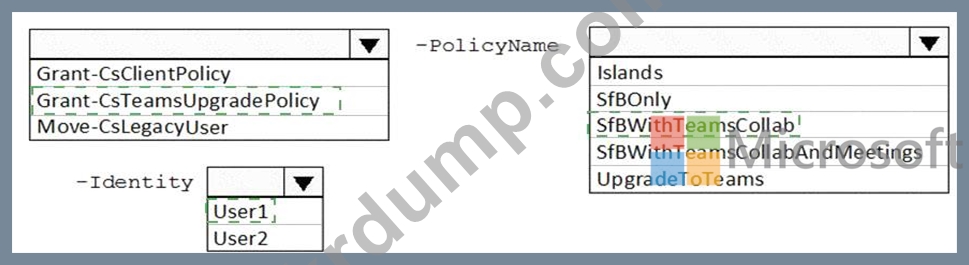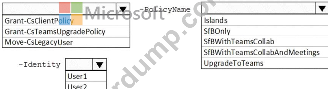 * User1은 Skype for Business만을 사용하여 채팅하고 모임을 생성할 수 있어야 합니다.
