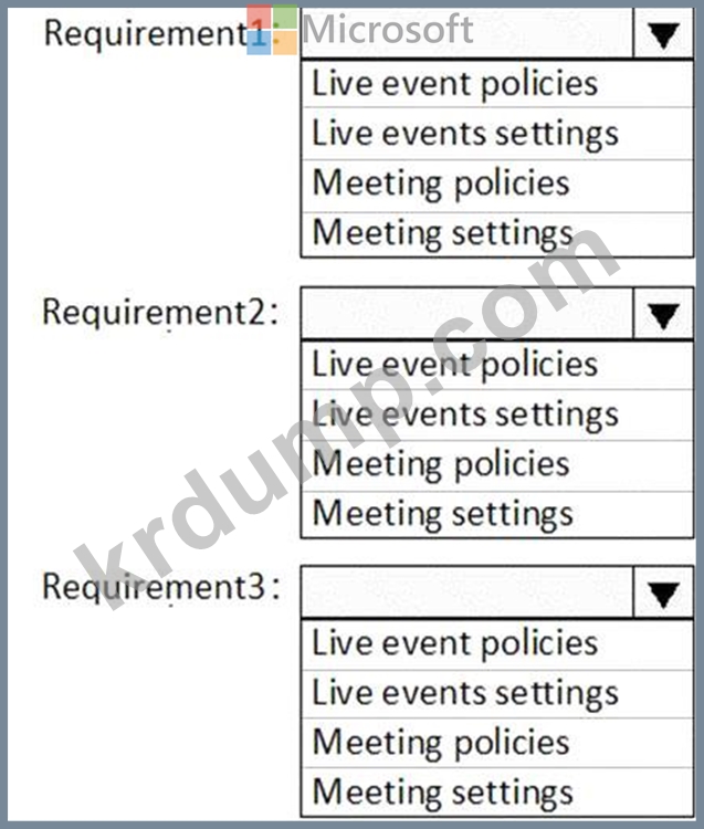 다음 표에 나와 있는 요구 사항을 충족하도록 Microsoft Teams를 구성해야 합니다.