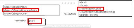 * 사용자 1은 Skype for Business만을 사용하여 채팅하고 모임을 생성할 수 있어야 합니다.