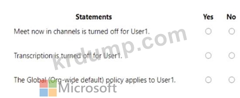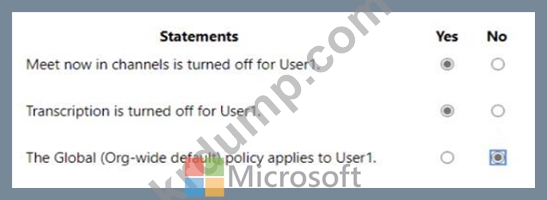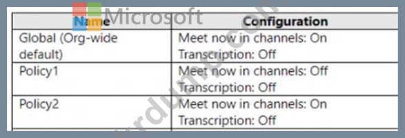 회의 정책 표에 표시된 대로 구성된 회의 정책이 있습니다. (회의 정책 탭을 클릭하세요.)