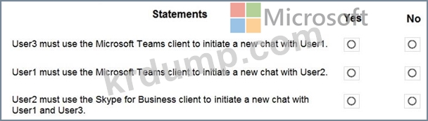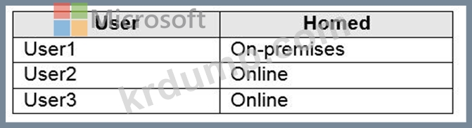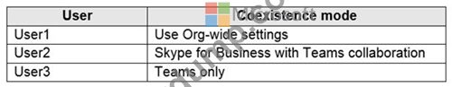 다음 표에 표시된 것처럼 공존 모드는 User1, User2, User3이라는 세 명의 사용자에 대해 구성됩니다.