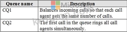 다음 표에 표시된 통화 대기열을 만들어야 합니다.