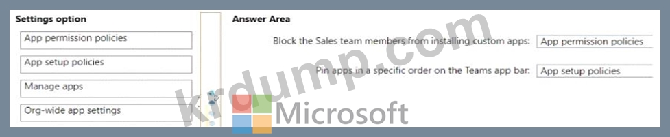 * Sales라는 팀 구성원이 사용자 지정 앱을 설치하는 것을 차단합니다.