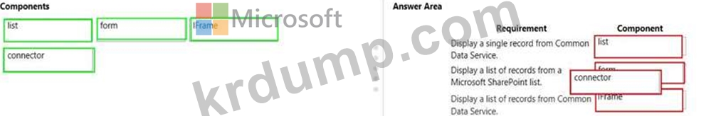 어떤 구성 요소를 사용해야 합니까? 대답하려면 적절한 구성 요소를 올바른 요구 사항으로 끌어다 놓습니다. 각 구성 요소는 한 번, 두 번 이상 또는 전혀 사용되지 않을 수 있습니다. 콘텐츠를 보려면 창 사이의 분할 막대를 드래그하거나 스크롤해야 할 수 있습니다.