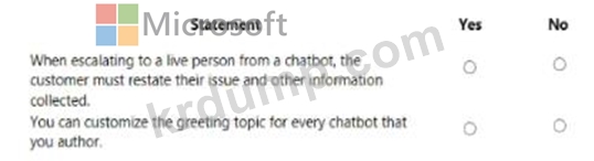 다음 각 문장에 대해 회사용 Power Virtual Agents 챗봇을 작성하고 있습니다. 해당 문장이 사실이면 예를 선택하십시오. 그렇지 않으면 아니요를 선택합니다.
