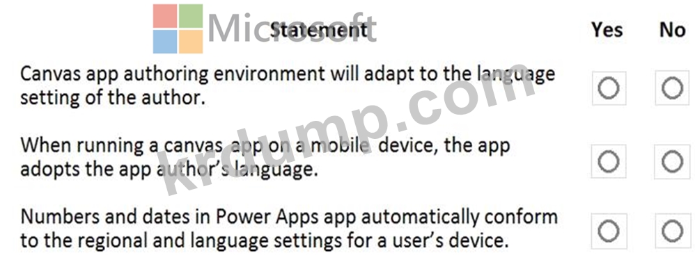 다음 각 진술에 대해 진술이 참이면 예를 선택하십시오. 그렇지 않으면 아니요를 선택합니다.
