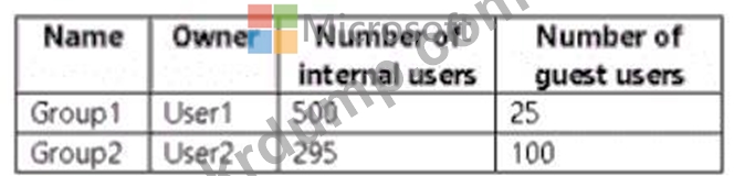 각 그룹에 필요한 Azure AD Premium P2 라이선스의 최소 개수는 얼마입니까? 정답을 입력하려면 정답 영역에서 해당 항목을 선택하세요. 참고: 정답 하나당 1점입니다.